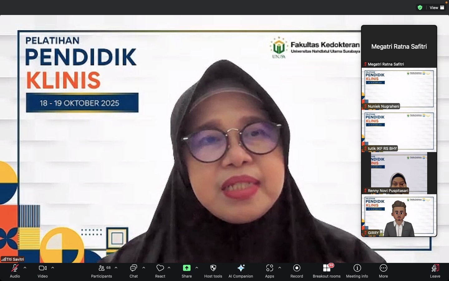 Kegiatan ini menghadirkan narasumber Prof. dr. Rr. Titi Savitri Prihatiningsih, MA, M.Med.Ed., Ph.D. dari Universitas Gajah Mada yang telah berpengalaman dalam pengembangan pendidikan klinik dan pembelajaran berbasis kompetensi di institusi kedokteran.