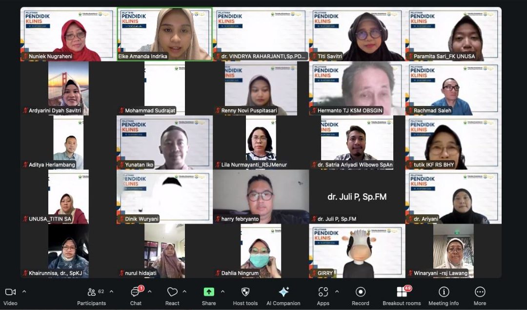 Surabaya — Fakultas Kedokteran Universitas Nahdlatul Ulama Surabaya (FK UNUSA) menggelar Pelatihan Pendidik Klinis (Clinical Teacher Training) pada 18 – 19 Oktober 2025 secara online. Program ini diikuti oleh dosen klinik, dokter pendidik di rumah sakit jejaring, dan dosen fakultas kedokteran.